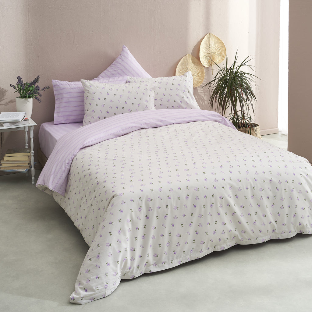 Σεντόνι Διπλό 200x260εκ. Salonica Άνοιξη (Λιλά) Σχέδιο Κατωσέντονο