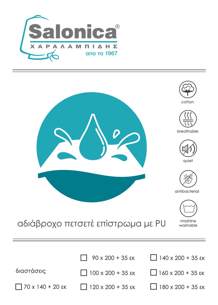Πετσετέ προστατευτικό στρώματος με αδιάβροχο φιλμ (αθόρυβο PU). Προστατεύει το στρώμα σας από κάθε είδους υγρό και λεκέ, κρατώντας το στρώμα σας καθαρό σαν καινούργιο.