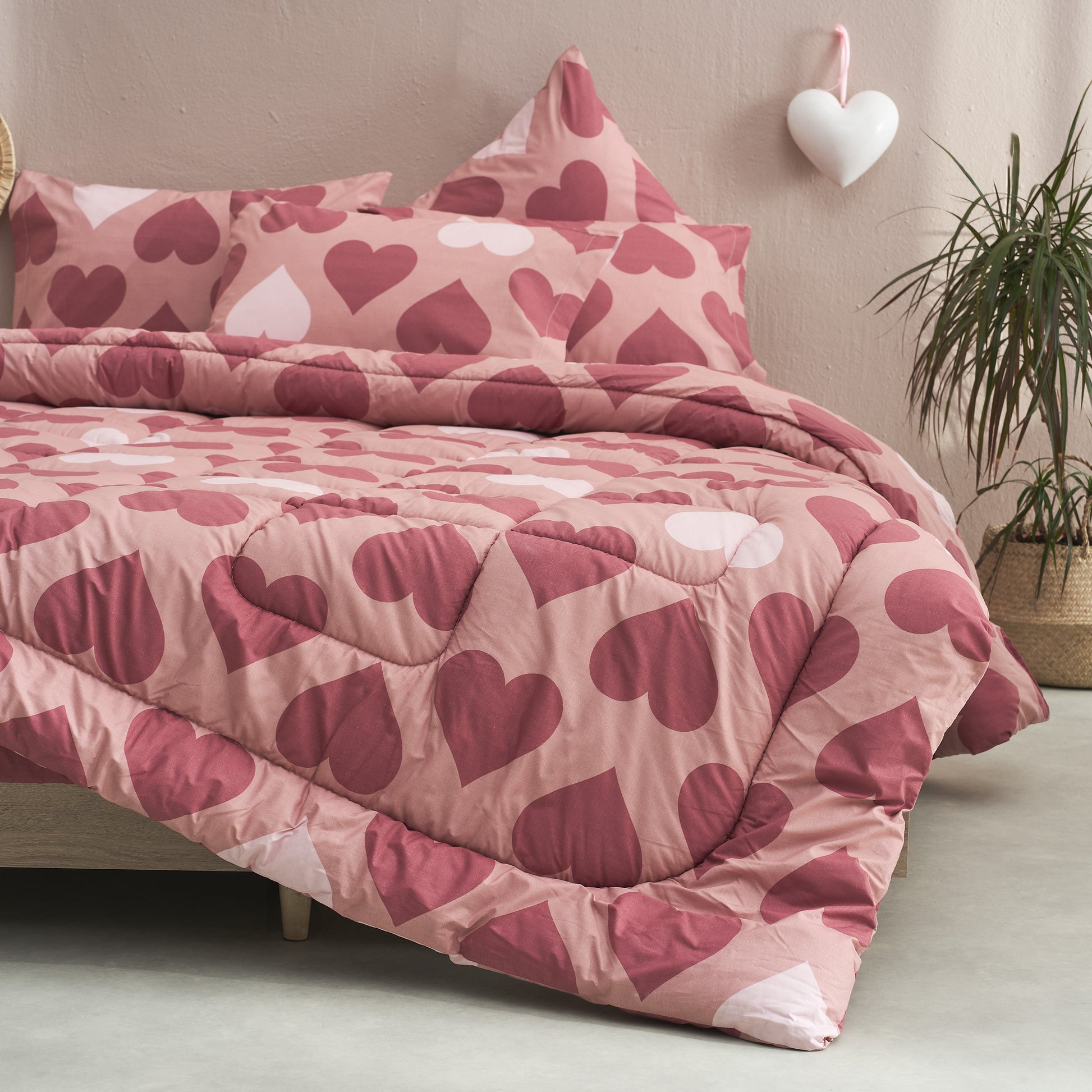 Σεντόνι Μονό με Λάστιχο 90x200+30εκ. Salonica Love (Κόκκινο)
