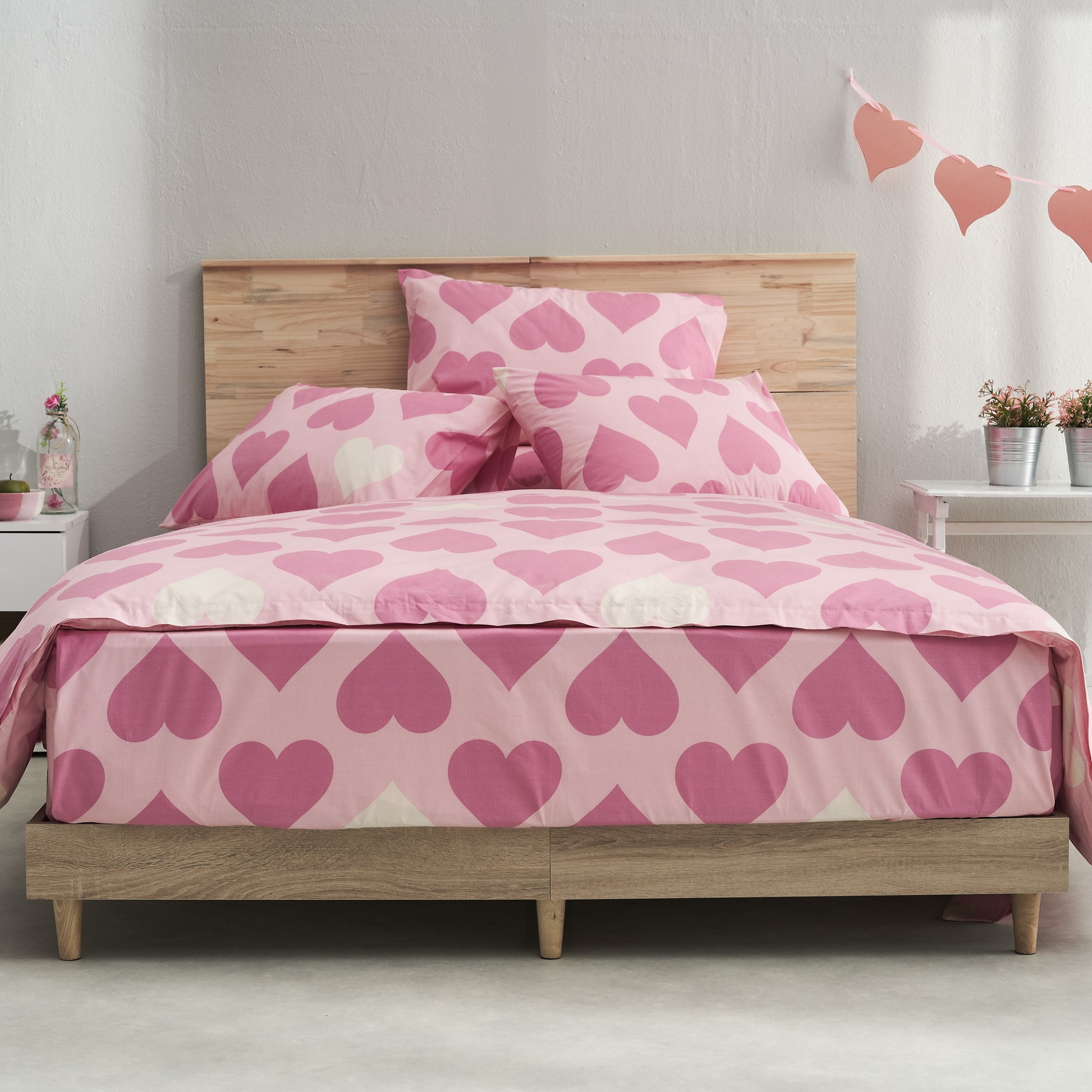 Σεντόνι Μονό με Λάστιχο 90x200+30εκ. Salonica Love (Ροζ)