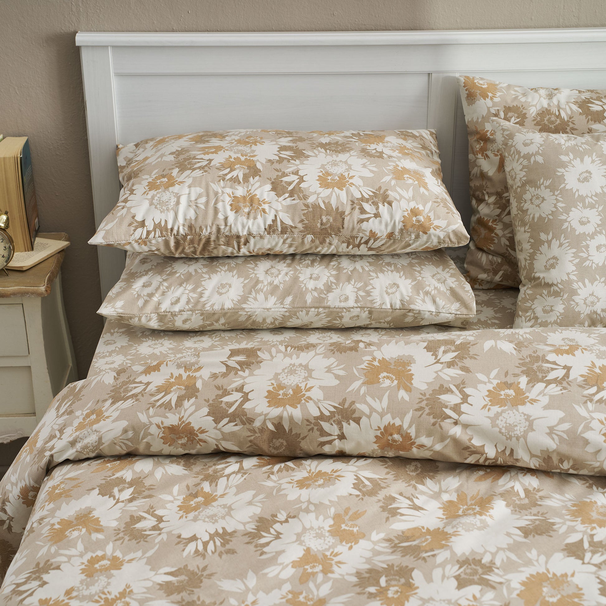 Μαξιλαροθήκες Salonica Χρυσάνθεμο (Μπεζ) Σχέδιο Κατωσέντονο
