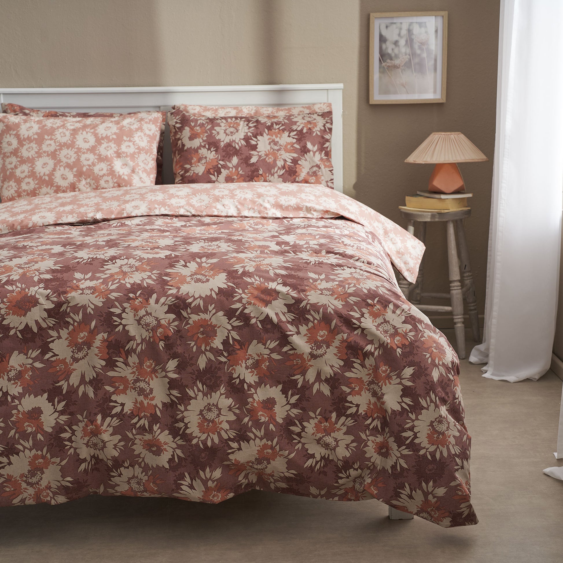 Σεντόνι Υπέρδιπλο με Λάστιχο 180x200+30εκ. Salonica Χρυσάνθεμο (Κανελί) Σχέδιο Πανωσέντονο